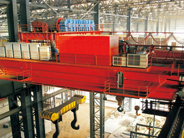 山東日照四梁鑄造起重機銷售廠家鑄造橋式起重機是鋼廠冶煉車間的主要起重運輸設備,用于冶煉過程中液態金屬的轉運、澆注及兌鐵水等作業,主要由橋架、小車、吊鉤梁、大車運行及電氣部分組成,125t以下采用雙梁結構,125t以上采用四梁結構,主鉤取物裝置為固定間距的吊鉤梁,用來吊運鐵水包,副鉤用來與主鉤配合以傾倒鐵水及其它輔助性吊運作業。