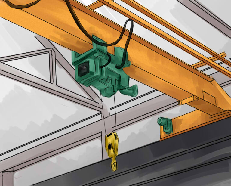 5、下小車設有主、副兩鉤,置于主梁中心下方。