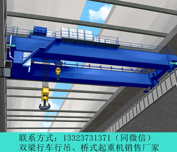 江蘇鹽城20t雙梁行車行吊廠家雙梁行車主要是由橋架、小車、電氣設備三大部分組成,其中橋架指的是裝有大車運行機構的架子,而小車則指的是裝有小車運行機構和起升結構的部件,在起重機中單鉤式和雙鉤式的額定重量是不一樣的,主鉤主要是用來吊取重物,而副鉤則是除了起重輕物之外,還可以對主鉤起到協助作用,比如傾轉或者翻倒的動作,但是不允許將主鉤和副鉤兩個部件同時進行起吊兩件不同的物體,主鉤和副鉤在工作的時候,不能夠超過各自的額定起重量。